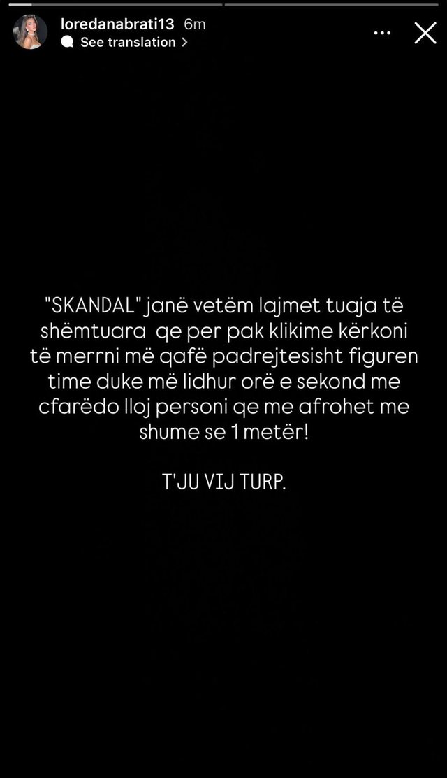 Në një story në Instagram, Loredana i ka hedhur poshtë këto thashetheme duke i quajtur të pavërteta dhe të papërgjegjshme.