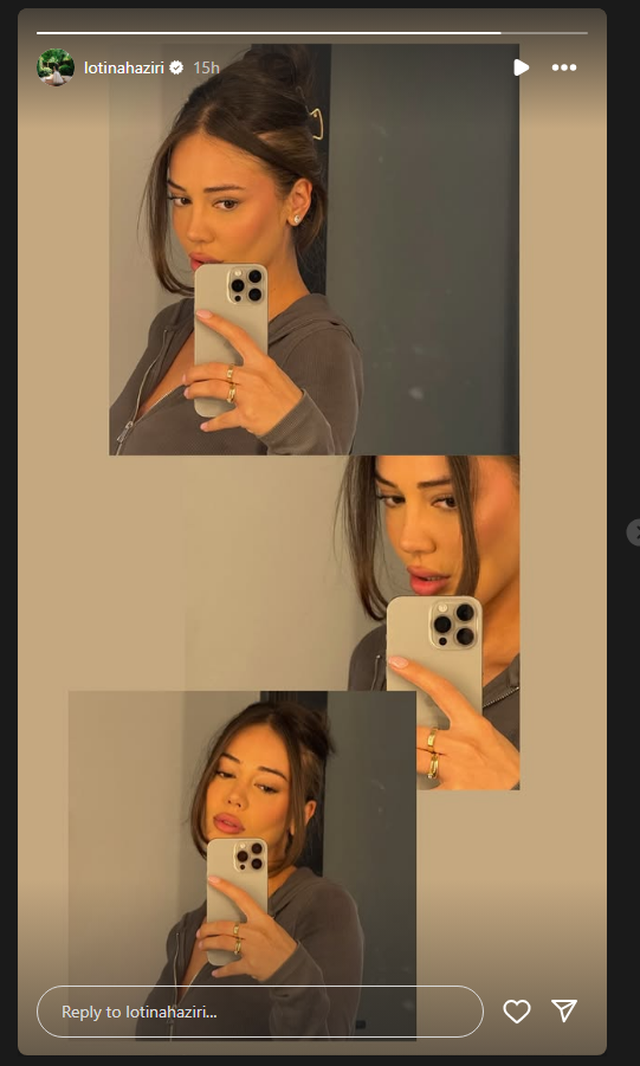 Lotina Haziri ka ndezur rrjetin me një seri fotosh në Instagram, ku përveç elegancës që e karakterizon, një detaj i vogël por domethënës mori gjithë vëmendjen: një unazë në gishtin e fejesës.