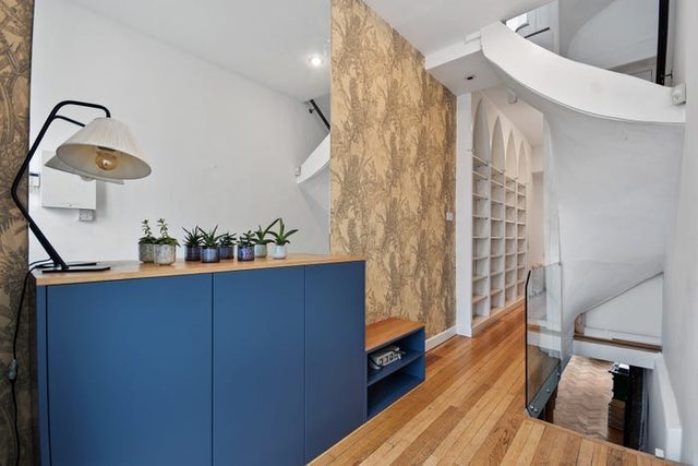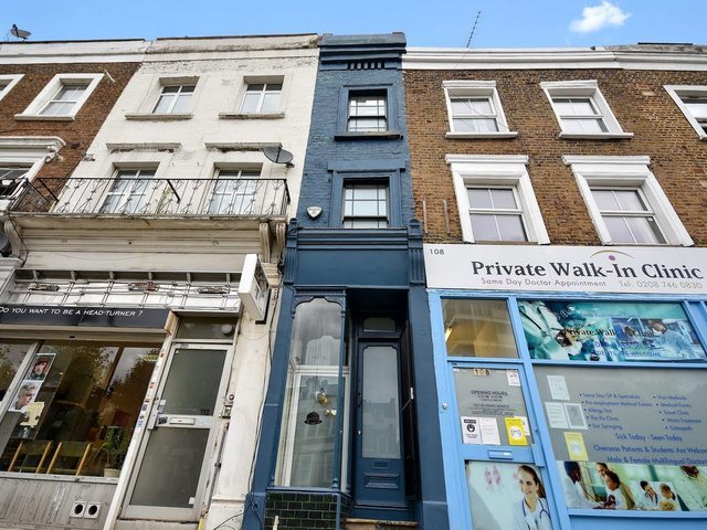 Më pak se 2 metra e gjerë dhe 1,034 metra katrorë, prona me pesë kate ishte dikur një dyqan kapelesh, sipas agjentit të pasurive të patundshme Winkworth, i cili po e shet. Shtëpia me dy dhoma gjumi ndodhet në Shepherd's Bush, në perëndim të Londrës dhe u shndërrua fillimisht nga fotografi i modës Juergen Teller.