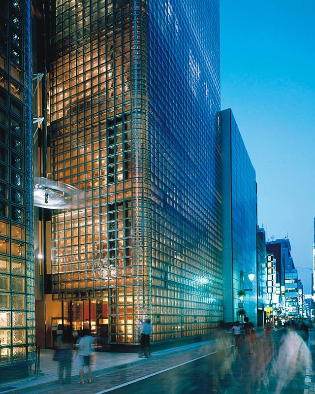 E ndërtuar mbi një truall të ngushtë përgjatë rrugës Harumi-dori, godina 15-katëshe bashkon në një hapësirë unike butikun luksoz, zyrat qendrore, galeritë ekspozuese, madje edhe një hyrje në stacionin e metrosë një shembull i përkryer i funksionalitetit që takon estetikën.