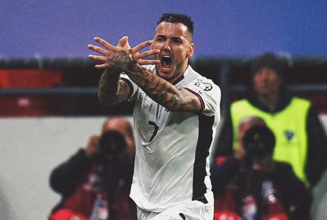 Fanella që Rey Manaj veshi në fitoren historike të Shqipërisë ndaj Serbisë është shitur në ankand për 3,100 euro.