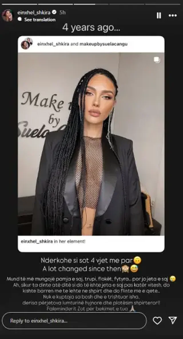 Në një postim nostalgjik në “Instastory”, Einxhel ndau një kujtim nga ajo periudhë, duke reflektuar mbi rrugëtimin e saj dhe ndryshimet e mëdha që ka përjetuar ndër vite.