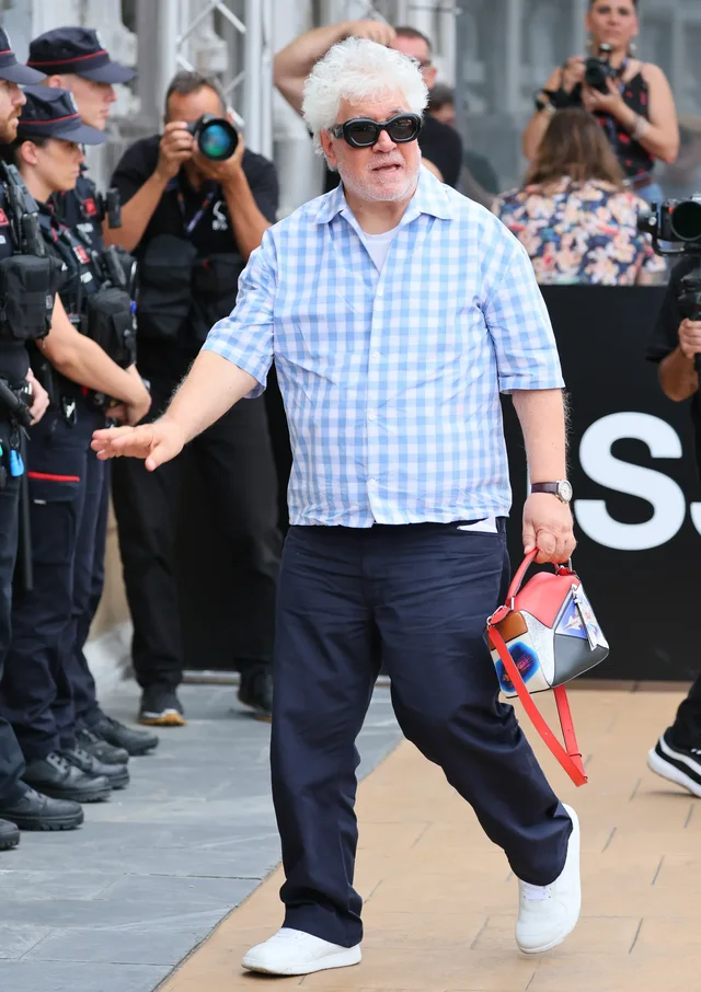 Edhe e papritura - jo një djalë tridhjetë vjeçare apo një metroseksual sportiv, por një burrë 76-vjeçar, Pedro Almodóvar - u pa duke mbajtur një çantë Loewe. Regjisori, me rroba të përditshme, duket si çdo djalë tjetër në rrugë, gjë që e bën çantën shumë më pak 'kërcënuese' sesa një pamje elegante.