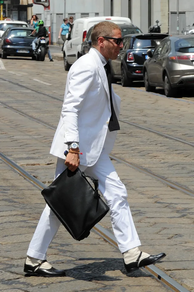 Zgjidhja e problemit është, me të vërtetë, një çantë, por shumë burra edhe sot (në vitin 2025, po) duket se ngurrojnë ta përdorin një të tillë. Përveç nëse bie në atë kategori specifike të etiketuar si “çantë për burra” (do t’i analizojmë ato më vonë). Në këto kohë fluide, dikush mund të mendojë, ose të paktën të shpresojë, se asgjë nuk e pengon një heteroseksual të mbajë një çantë që guxon të shkojë përtej parametrave të rreptë të një çante shpine ose neutralitetit të një çante prej cope. Megjithatë, çanta nuk është bërë kurrë e njohur mes burrave, të paktën atyre “të zakonshëm”, me sa duket sepse nofka e saj është shumë femërore, edhe pse nuk ka asgjë sadopak femërore në vetë emrin.