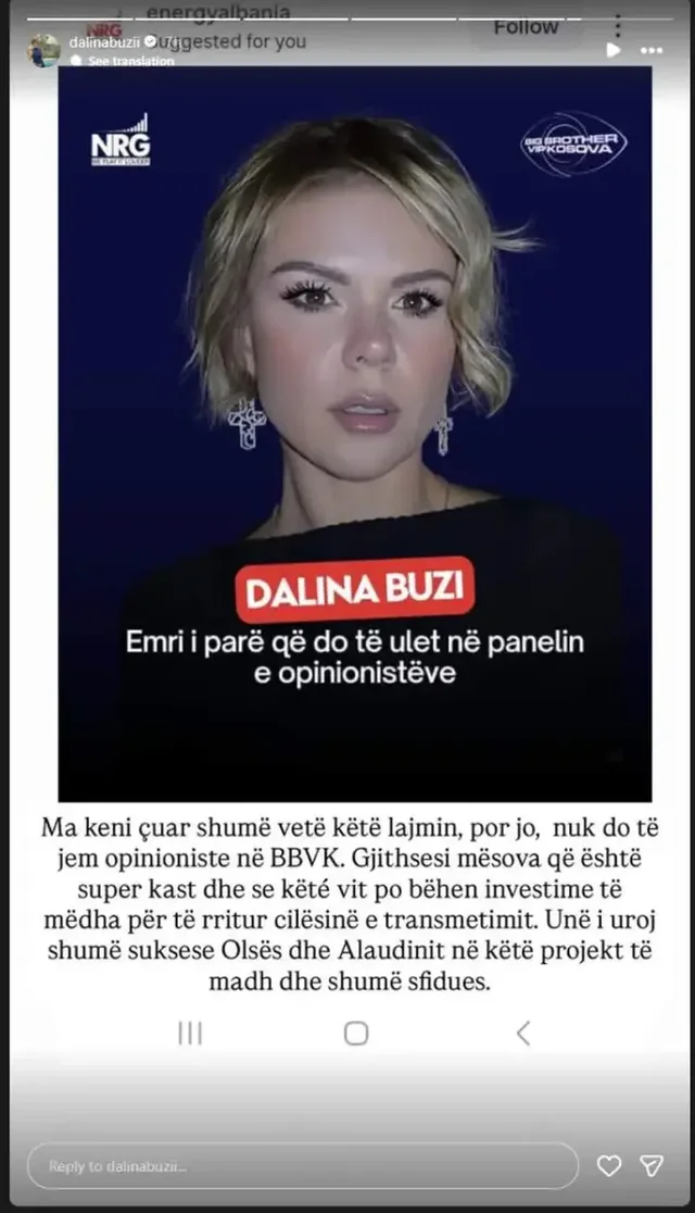 Lajmi se Dalina Buzi do t’i bashkohej sezonit të ri të “Big Brother VIP Kosova” si opinioniste u përhap me shpejtësi në rrjete sociale.