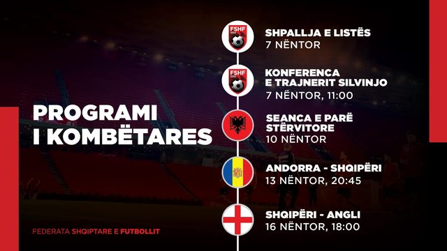 Trajneri Silvinjo do të publikojë listën me lojtarët e grumbulluar ditën e premte, më 7 nëntor. Më pas, ai do të dalë në konferencë për mediat në “Shtëpinë e Futbollit”, ku do të flasë për listën dhe për dy sfidat e fundit kualifikuese.