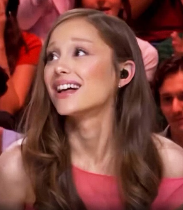 Në studio, Ariana u shfaq krah bashkëprotagonistëve Cynthia Erivo dhe Jonathan Bailey, me flokët e lëshuara mbi supe, larg look-ut të saj klasik me bisht të tendosur lart.