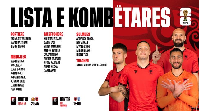 Trajneri Silvinjo ka publikuar listën e lojtarëve të grumbulluar për dy ndeshjet e fundit kualifikuese të Kupës së Botës 2026 ndaj Andorrës dhe Anglisë.