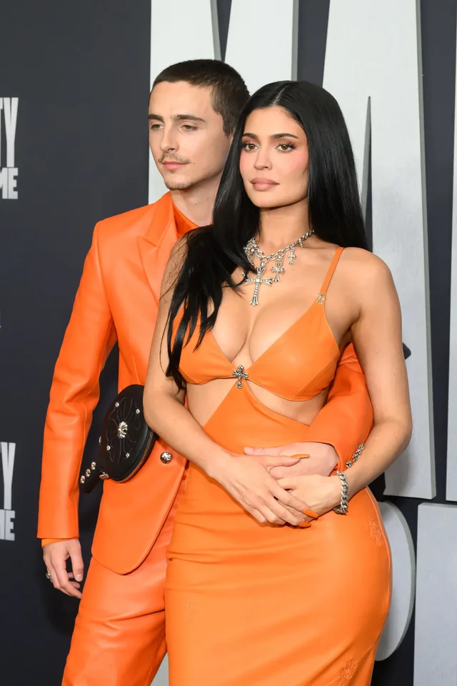 Timothée, protagonist i filmit të ri të Josh Safdie-s (krah Gwyneth Paltrow dhe Tyler, the Creator), dhe Kylie, e cila prej muajsh komentohet për lidhjen me aktorin mes zërave për ndarje, u shfaqën të dy të veshur matchy-matchy: ai me kostum lëkure dhe këmishë mëndafshi, ajo me fustan portokalli me detaje cut-out të dy me firmë Chrome Hearts, brand luksoz nga Los Anxhelosi, i njohur për pjesët e rralla, të punuara në seri shumë të kufizuar, me lëkurë të përzgjedhur dhe detaje në argjend 925.