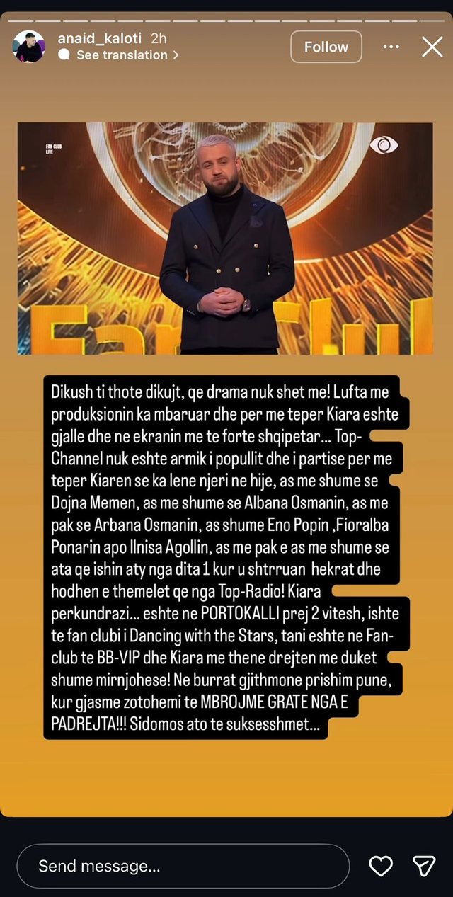 Vetëm pak orë pas postimit të Kalotit, Luizi publikoi një Story me tone të ashpra, pa përmendur emra, por me një adresim që u duk i drejtpërdrejtë: