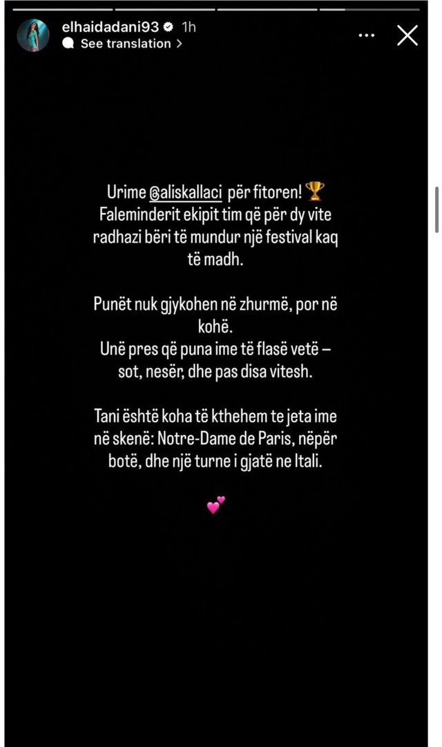 “Tani është koha të kthehem te jeta ime në skenë: Notre Dame de Paris, nëpër botë, dhe një turne i gjatë në Itali.”